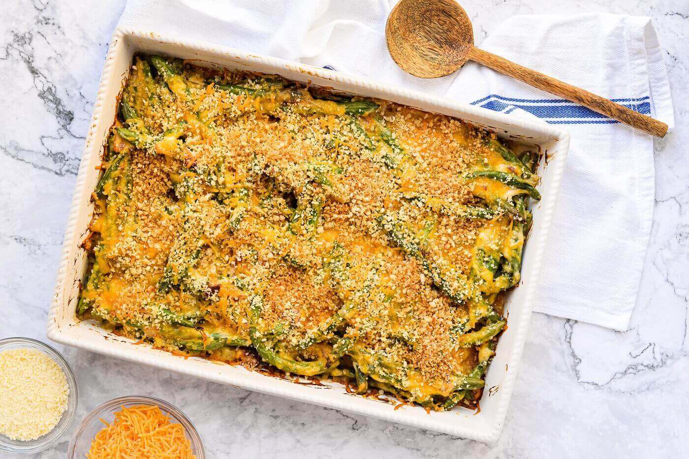 说到感恩节美食,青豆砂锅菜可与游行和橄榄球比赛比肩。下面的食谱可以让这道传统菜肴与众不同——因为它确实与众不同奶酪,而且有很多。我们已经烤好了,上面酥脆里面黏糊糊的。我们说过还有培根吗?做好准备吧,从现在开始,你会被要求在每个感恩节庆祝活动上都带青豆砂锅。